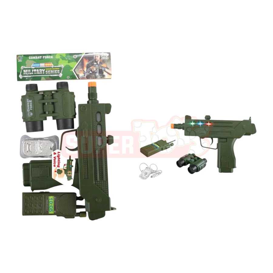 Səsli və İşıqlı Oyuncaq Avtomat – uşaqların hərbi oyunlarını daha həyəcanlı edən realist dizayna sahib oyuncaq dəstidir. Dəstə avtomat, durnabaş baxış dürbünü, simvolik kompas, siqnal cihazı və hərbi nişanlar daxildir.
