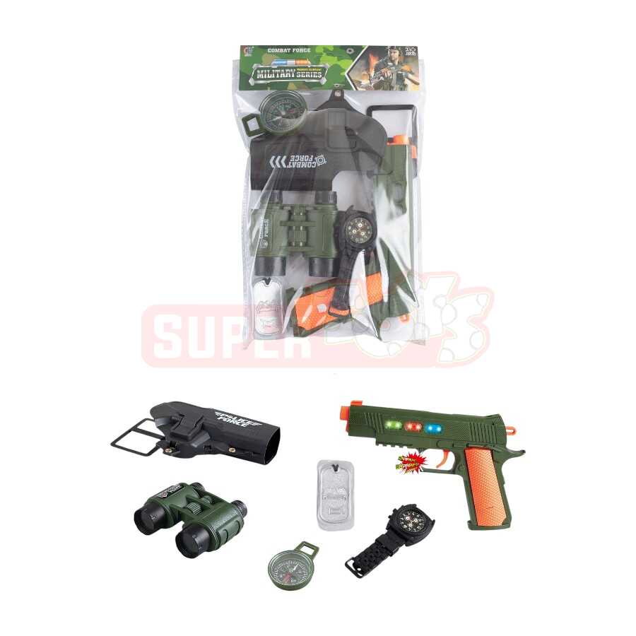 Səsli və İşıqlı Oyuncaq Tapança uşaqlar üçün həyəcanlı və maraqlı oyunlar yaratmaq məqsədilə hazırlanmış hərbi temalı oyuncaq dəstidir. Dəst tapança, dürbün, kompas, qol saatı və hərbi nişan kimi aksesuarları ilə birlikdə təqdim olunur.