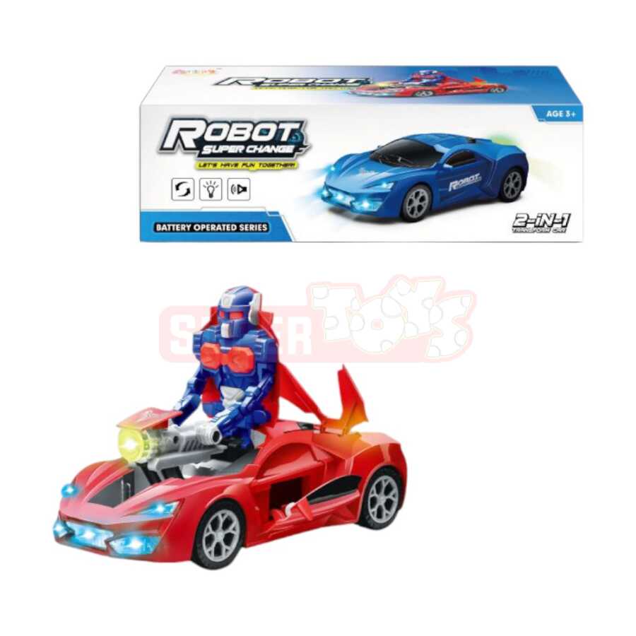 Səsli İşıqlı Robot-Maşın – həm robot, həm də avtomobil formasında istifadə olunan 2 in 1 transformasiya oyuncağıdır. Bu model səs və işıq effektləri ilə uşaqlara dinamik və həyəcanlı oyun təcrübəsi yaşadır. Avtomatik çevrilmə funksiyası sayəsində maşın bir neçə saniyədə robot halına keçir. Parlaq işıqları və real səsləri sayəsində uşaqlar özlərini futuristik döyüş səhnəsində hiss edəcəklər.