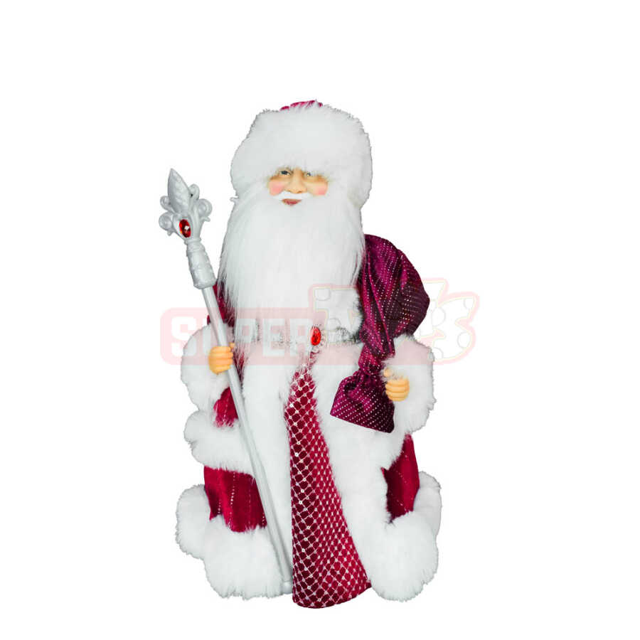 Səsli Şaxta Baba fiquru (50 sm) – klassik qırmızı və ağ rənglərdə hazırlanmış, bayramın ən sevimli simasını evinizə gətirən dekorasiyadır. Parıltılı parça, yumşaq xəz bəzəklər və əlindəki gümüş əsası ilə bu fiqur həm estetik, həm də əyləncəli görünüş yaradır.