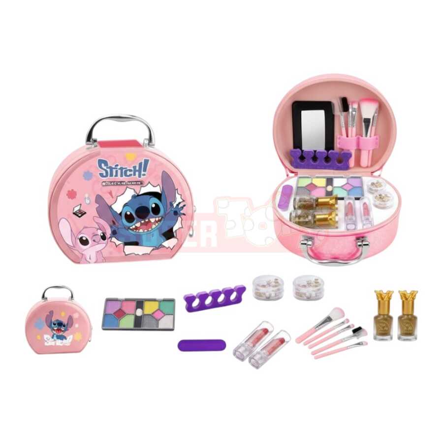 Stitch Kosmetika Makyaj Dəsti uşaqlar üçün nəzərdə tutulmuş rəngarəng və təhlükəsiz oyun kosmetikası ilə komplektləşdirilmiş çamadandır. Dəstin içində güzgü, fırçalar, dırnaq boyaları, dodaq boyaları və kölgələr yer alır. Stitch dizaynlı çamadan formasındakı qab həm saxlama, həm də daşıma üçün çox rahatdır və rol oyunu zamanı uşaqların yaradıcılığını inkişaf etdirir. Bu məhsulu Supertoys mağazalarından və onlayn satışdan əldə edə bilərsiniz.