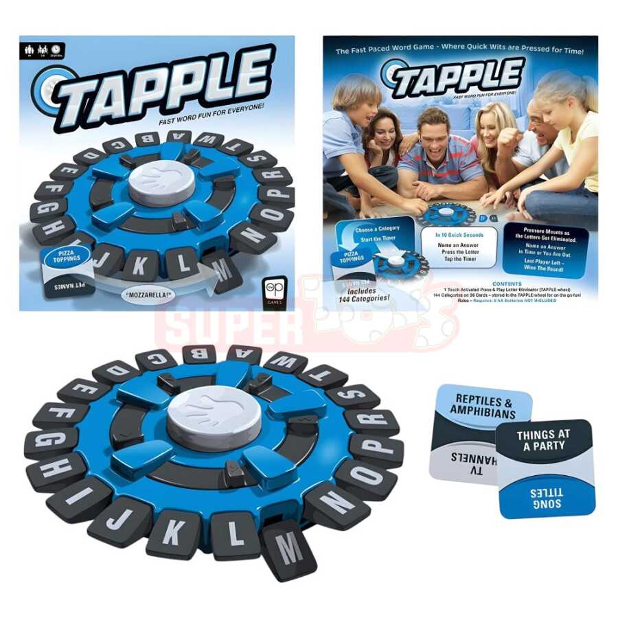 Tapple – sürətli düşünmə və düzgün cavab tapmaq bacarığını inkişaf etdirən maraqlı söz oyunudur. Oyunçular seçilmiş mövzu üzrə hərflərə uyğun sözlər tapmalı və vaxt bitmədən cavabı deməlidirlər. Sürət, diqqət və yaradıcılıq tələb edən bu oyun həm uşaqlar, həm də böyüklər üçün əyləncəli seçimdir.