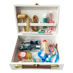 Supertoys-un Taxta Həkim Dəsti uşaqların yaradıcılıq qabiliyyətini inkişaf etdirmək və xəyal gücünü genişləndirmək üçün hazırlanmışdır. Bu dəst uşaqlara tibbi alətlərlə tanış olmaq və rol oyunları vasitəsilə həkim peşəsini öyrənmək imkanı təqdim edir. Təhlükəsiz və ekoloji təmiz taxta materiallardan hazırlanmış bu oyuncaq həm təhsil, həm də əyləncə məqsədi üçün idealdır.