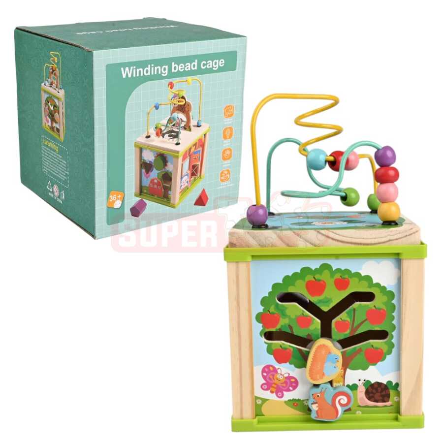 Taxta interaktiv qutu uşaqların erkən yaş dövründə zehni və fiziki inkişafını dəstəkləmək üçün hazırlanmış çoxfunksiyalı öyrədici oyuncağıdır. Üst hissəsində yerləşən rəngli bead maze (tel üzərində muncuqlar) uşağın əl-göz koordinasiyasını, diqqətini və incə motor bacarıqlarını inkişaf etdirir. Yan tərəflərdəki sürüşən fiqurlar və uyğunlaşdırma yolları məntiqi düşünmə və səbəb-nəticə əlaqəsini formalaşdırmağa kömək edir. Təbii taxtadan hazırlanmış bu oyuncaq təhlükəsizdir və uzunmüddətli istifadəyə uyğundur. Ev şəraitində, bağçada və erkən inkişaf məşğələləri üçün ideal seçimdir. Bu məhsulu Supertoys mağazalarından və onlayn satışdan əldə edə bilərsiniz.
