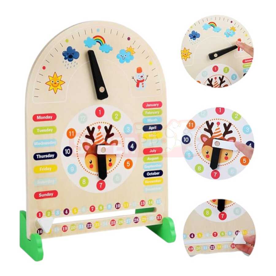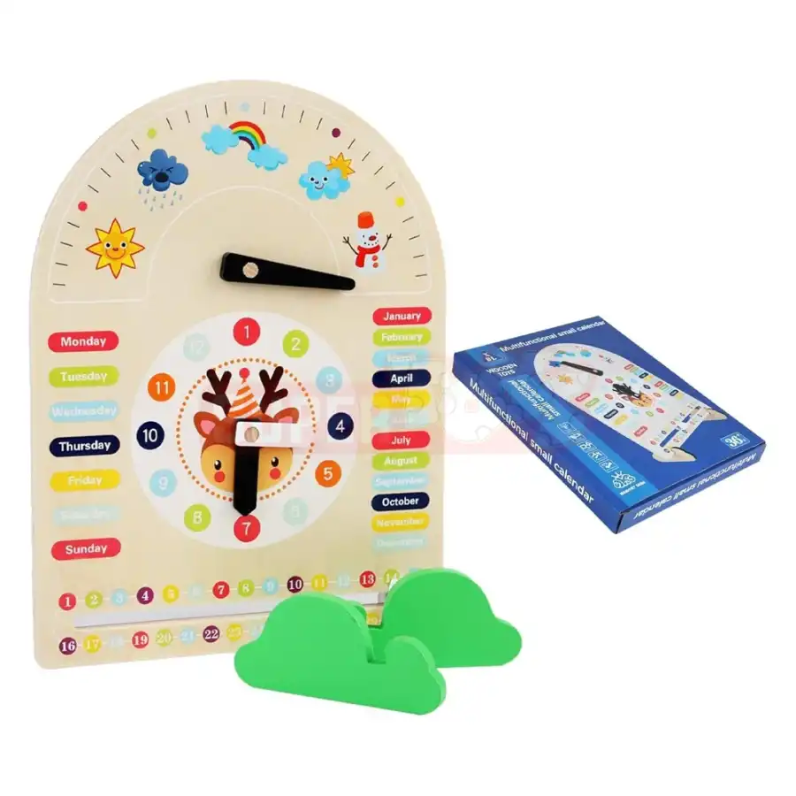 Taxta Öyrədici Saat və Təqvim uşaqlara vaxt, gün, ay və tarix anlayışını bir arada öyrədən çoxfunksiyalı öyrədici taxta oyuncağıdır. Saat əqrəblərinin çevrilməsi ilə vaxt oxuma bacarığı formalaşır, təqvim hissəsi isə həftənin günlərini, ayları və tarix ardıcıllığını öyrənməyə kömək edir. Rəngli dizayn uşağın diqqətini cəlb edir, gündəlik rejim və zaman anlayışının daha asan qavranmasını təmin edir. Bu oyuncaq məntiqi düşünmə, yaddaş və konsentrasiya bacarıqlarının inkişafına müsbət təsir göstərir. Təhlükəsiz və ekoloji taxta materialdan hazırlandığı üçün uşaqlar üçün tam uyğundur. Bu məhsulu Supertoys mağazalarından və onlayn satışdan əldə edə bilərsiniz.