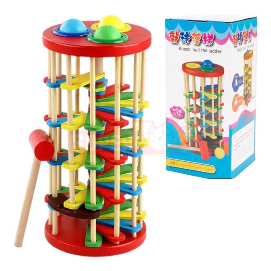Taxta top döymə pilləkən oyuncağı uşaqların motor bacarıqlarını, diqqətini və səbəb-nəticə əlaqəsini inkişaf etdirmək üçün nəzərdə tutulmuş klassik və effektiv öyrədici oyuncaqlardan biridir. Uşaq taxta çəkiclə yuxarı hissədən topları vuraraq pilləkənlər boyunca aşağı düşməsini izləyir. Bu proses uşağın həm fiziki aktivliyini artırır, həm də diqqət və müşahidə bacarıqlarını gücləndirir. Rəngli pilləkənlər və toplar vizual maraq yaradır, oyun zamanı əylənmə ilə yanaşı öyrənmə təmin edir. Təbii taxtadan hazırlanmış bu oyuncaq erkən yaş inkişafı üçün ideal seçimdir. Bu məhsulu Supertoys mağazalarından və onlayn satışdan əldə edə bilərsiniz.