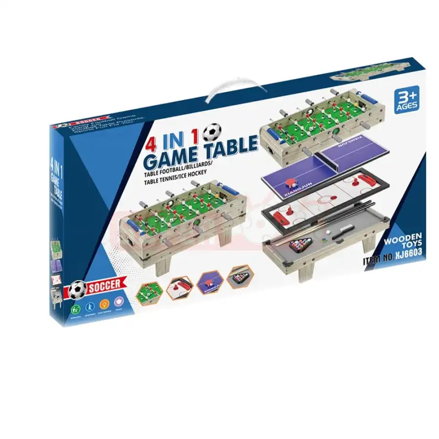 Taxta Stolüstü Oyun 4-lü ailə və dostlarla birlikdə əyləncəli vaxt keçirmək üçün nəzərdə tutulmuş çoxfunksiyalı oyun dəstidir. Bu dəst stolüstü futbol, hava xokkeyi, bilyard və stolüstü tennis oyunlarını bir arada təqdim edir. Taxta konstruksiya məhsulun davamlılığını artırır və uzunmüddətli istifadə imkanı yaradır. Oyunlar uşaqlarda diqqət, reaksiya sürəti, məntiqi düşünmə və əl-göz koordinasiyasının inkişafına kömək edir. Eyni zamanda ailəvi ünsiyyəti gücləndirən ideal stolüstü oyun seçimidir. Bu məhsulu Supertoys mağazalarından və onlayn satışdan əldə edə bilərsiniz.