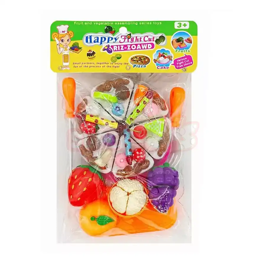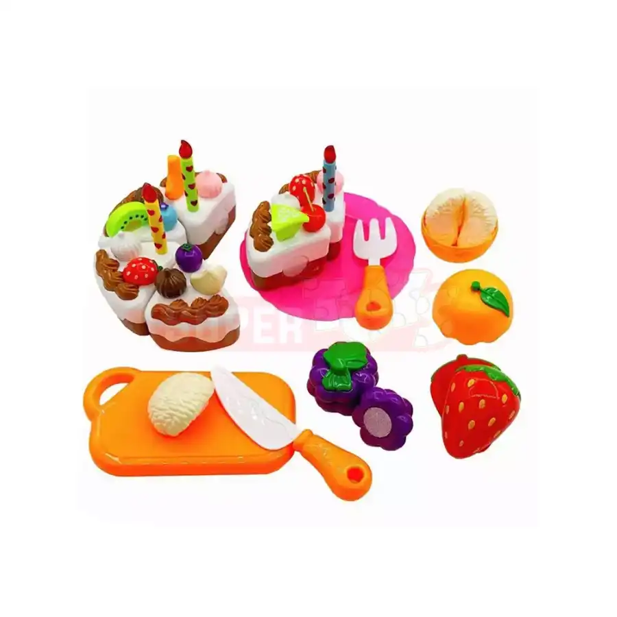 Bu kəsilən tort və meyvə oyuncağı uşaqlar üçün nəzərdə tutulmuş əyləncəli və öyrədici mətbəx oyun dəstidir. Dəstə tort dilimləri, müxtəlif meyvələr, kəsmə lövhəsi və oyuncaq bıçaq daxildir. Uşaqlar bu dəst vasitəsilə yemək hazırlama oyunları oynayaraq rol oyunları qururlar.