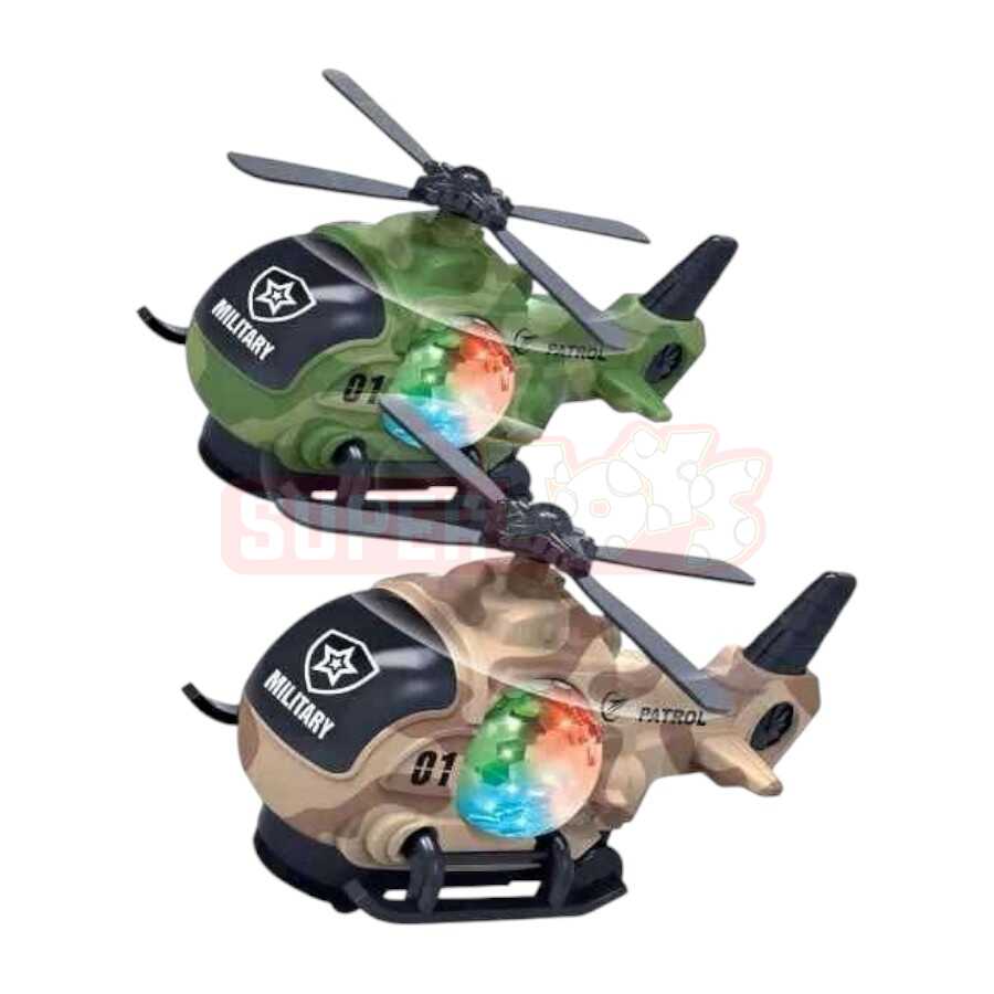 Uşaqlar üçün əsl real effektli hərbi vertolyot! Bu tüstü buraxan, işıqlı və səsli vertolyot modeli həm görsel, həm də səslə hərəkəti birləşdirir. Tüstü effekti onu daha real göstərir, parlayan LED işıqlar və səslər isə uşaqların oyun atmosferini canlandırır. Güclü dizaynı və hərbi rəng çaları ilə bu oyuncaq həm hədiyyə, həm də kolleksiya üçün mükəmməldir.