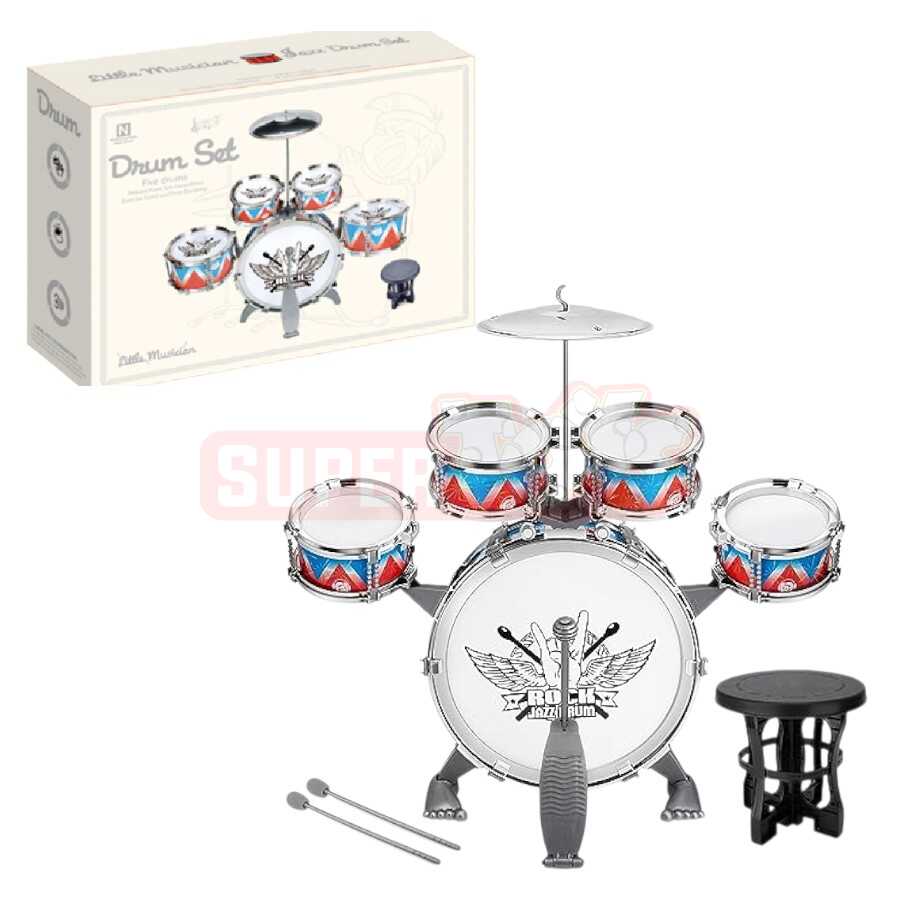 Kiçik musiqiçilər üçün əsl səhnə təcrübəsi! Bu baraban seti 5 baraban, zil, çubuqlar və oturacaqdan ibarətdir. Uşaqlar ritm hissini inkişaf etdirir, koordinasiya və musiqi dinləmə qabiliyyətini gücləndirir.
