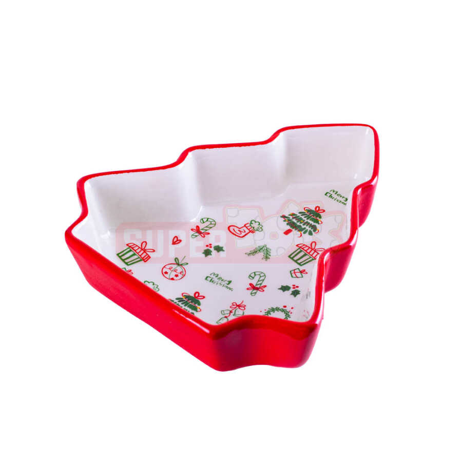 Yolka formalı Merry Christmas temalı keramika qab bayram süfrələrinizə xüsusi bayram abu-havası gətirir. Qırmızı və ağ rənglərin harmoniyasında hazırlanmış bu model, üzərindəki yolka və hədiyyə motivləri ilə dekorativ görünüş yaradır. Şirniyyat, konfet, qoz-fındıq və ya xırda bəzəklər üçün ideal seçimdir.