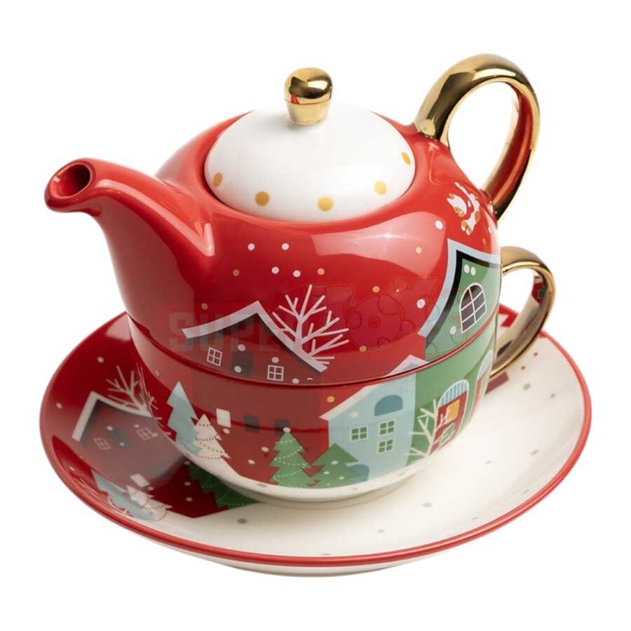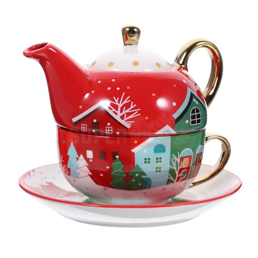 Dəstdə çaydan, fincan və boşqab hissəsi yer alır – fərdi istifadələr üçün mükəmməl hədiyyə seçimidir. Yeni il süfrələrinə zərif və isti atmosfer qatır.