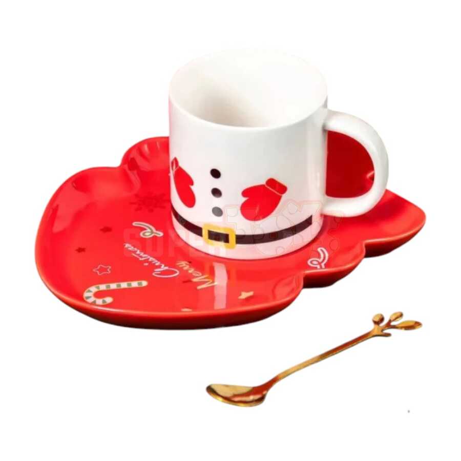 Qızılı qaşıq ilə birlikdə təqdim edilən bu keramika dəst həm isti içkilər üçün praktik, həm də Yeni il hədiyyəsi və dekorativ süfrə bəzəyi üçün ideal seçimdir.