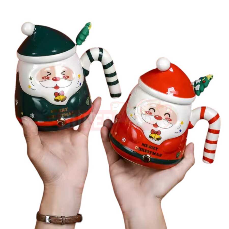 “Merry Christmas” dizaynlı Santa fincanı bayram mövsümünün əvəzolunmaz isti içki dostudur! Qapaqlı və qaşıqlı bu keramika fincan öz orijinal şəkli – Noel Baba (Santa Claus) forması ilə həm uşaqlar, həm də böyüklər üçün sevimli bir bayram aksesuarına çevrilir. Fərqli rəng seçimlərində (qırmızı, yaşıl və çəhrayı) təqdim olunur. Sap hissəsi konfet çubuğu formalıdır, üzərində isə yolka fiqurlu qaşıq yerləşir. Yeni il süfrələrini tamamlayan bu dekorativ fincan həm isti şokolad, kakao, qəhvə içmək üçün ideal, həm də hədiyyəlik və dekor məqsədilə mükəmməldir.