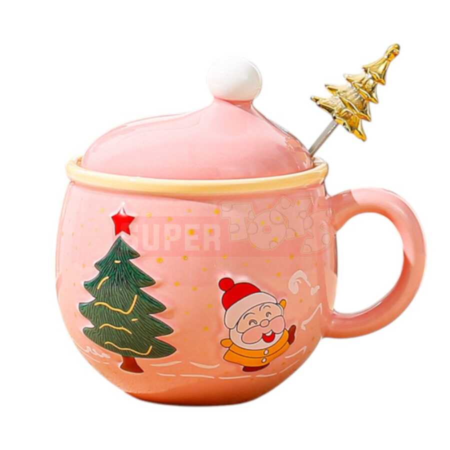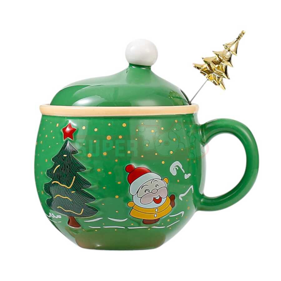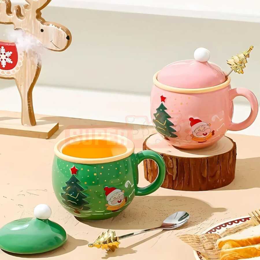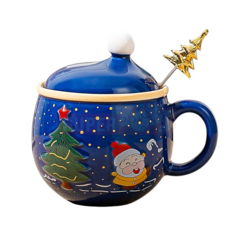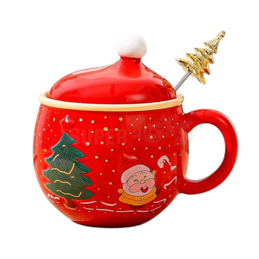 Qış mövsümünə rəng qatan bu qapaqlı və qaşıqlı Yeni il fincanı həm dekorativ, həm də funksional istifadəyə malikdir. Parlaq qırmızı keramika üzərində şən Santa Claus və yolka təsvirləri ilə bəzədilmiş bu model bayram süfrələrinə isti ab-hava gətirir. Fincanın üzərindəki qapaq içkinizi isti saxlayır, qızılı yolka formalı qaşıq isə dizayna zəriflik əlavə edir.