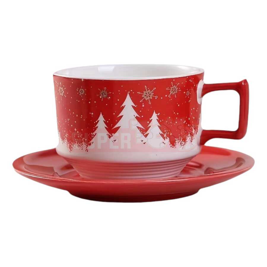 Yeni il mövsümünün əvəzolunmaz hissəsi olan bu qırmızı və yaşıl rəngli fincan dəsti, üzərindəki ağ yolka və qarı xatırladan dizaynı ilə isti və nostaljik ab-hava yaradır.