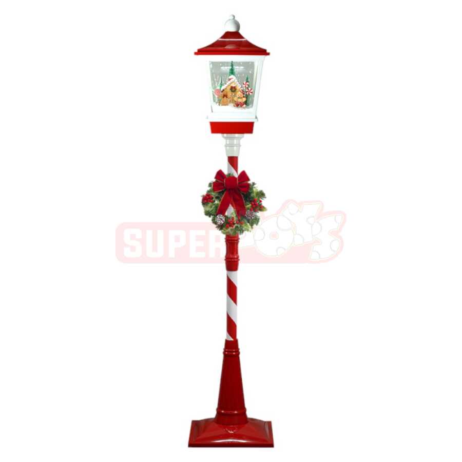 1.84 metr hündürlüyündə olan bu Yeni il işıqlı dekor dirəyi evinizə, ofisinizə və ya vitrinlərinizə bayram sehrini gətirəcək. Qırmızı-ağ zolaqlı klassik dizayn, fiqurlu şüşə bölməsi və içərisində işıqlanan Yeni il səhnəsi bu modeli xüsusi edir. Dirəyin üzərindəki yaşıl qapı bəzəyi (wreath) və qırmızı lent bayram ruhunu daha da gücləndirir.