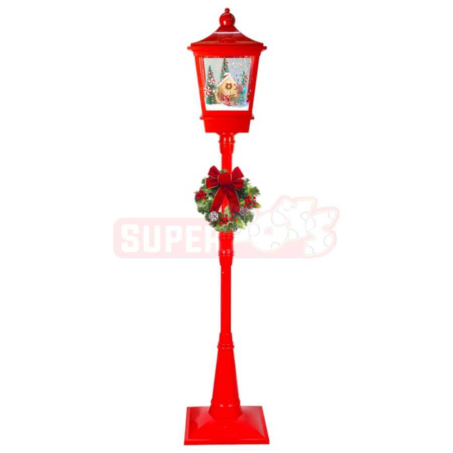 1.84 metr hündürlüyündə olan Yeni il işıqlı dekor dirəyi ilə evinizi və ya vitrinlərinizi sehrli bir bayram atmosferinə çevirin. Qırmızı parlaq bədənə malik olan bu modelin mərkəzində gözəl Yeni il kompozisiyası və işıqlı fiqurlar yerləşdirilib. Bəzəyi tamamlayan yaşıl qapı bəzəyi (wreath) və qırmızı lent, məhsula klassik Yeni il ruhunu bəxş edir.