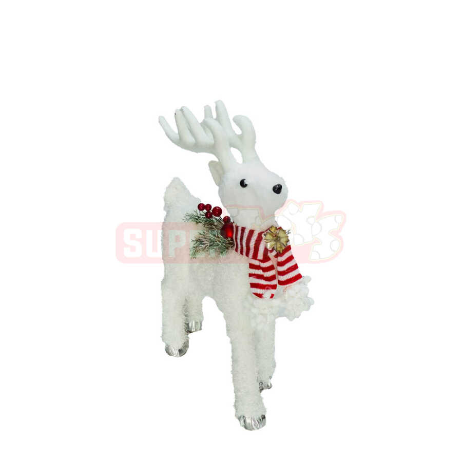 Yeni ilin sevimli simvollarından biri olan ağ maral dekoru evinizə bayram ab-havası qatacaq. Yumşaq materialdan hazırlanmış bu şık fiqur parlaq detalları, qırmızı şarfı və belindəki dekorativ şam budaqları ilə xüsusi gözəllik yaradır.