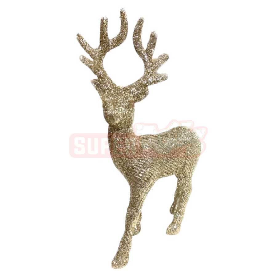Qızılı rəngdə parlaq Yeni İl yolka oyuncağı evinizə möhtəşəm bayram ab-havası bəxş edəcək. Şaxta babanın sevimli maral fiqurunu xatırladan bu dekor, yolkanızın altında və ya ev dekorasiyasında diqqət çəkən element olacaq. Parlaq qızılı rəngi sayəsində işıqlar altında daha da gözəl görünür.