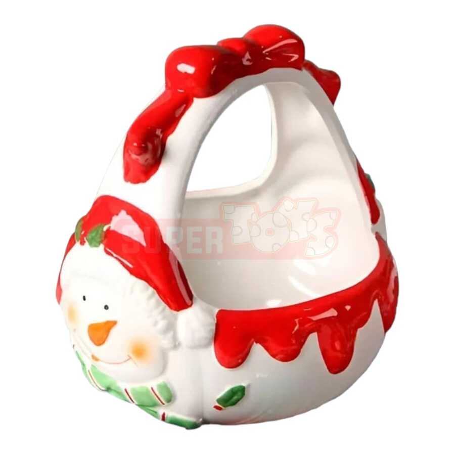 Şaxta Baba və qar adamı fiqurları ilə bəzədilmiş bu Yeni il qabı həm şən, həm də funksional bayram aksessuarıdır. Parlaq qırmızı və ağ rənglərdə hazırlanmış bu keramika qab, şokolad, konfet, peçenye və xırda hədiyyələrin təqdimatı üçün mükəmməldir.
