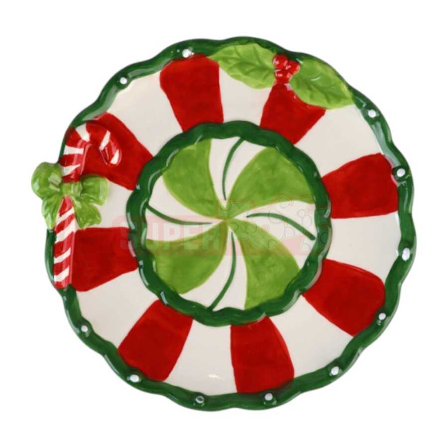 Bayram ruhunu süfrənizə gətirəcək bu qırmızı, yaşıl və ağ rəngli Yeni il boşqabı klassik konfet (candy cane) dizaynı ilə hazırlanmışdır. Rəngarəng və parlaq keramika səthi sayəsində həm şirniyyat, çərəz və desert təqdimatı, həm də dekorativ istifadə üçün idealdır.