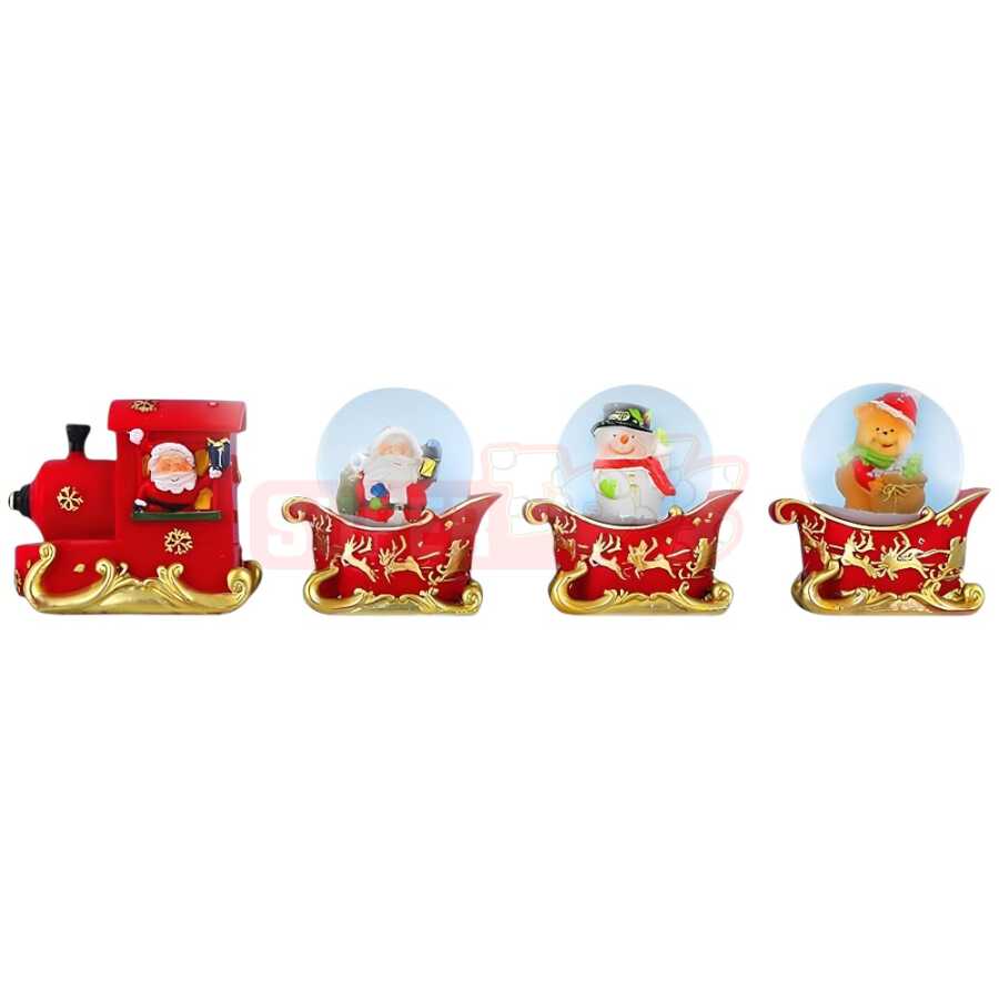 Bu gözəl Yeni il qar kürəsi dəsti qırmızı-qızılı qatar və xizək formasında hazırlanmışdır. Qatar lokomotivində Şaxta baba, digər xizək fiqurlarında isə Şaxta baba, qar adamı və ayı balığı təsvir olunub. Şüşə kürələr silkələndikdə qar dənəcikləri sehrli atmosfer yaradır, uşaqlar və böyüklər üçün unudulmaz bayram ab-havası gətirir. Ev dekoru, yolka bəzəyi və hədiyyə üçün əla seçimdir. Bu məhsulu Supertoys mağazalarından və onlayn satışdan əldə edə bilərsiniz.