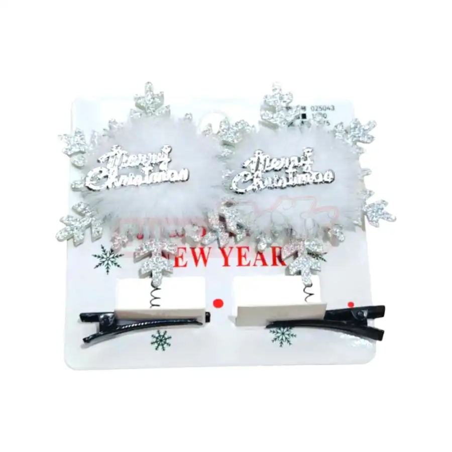 Ağ və gümüş rənglərinin parlaq kombinasiyasında hazırlanmış bu yeni il saç aksesuarı qızlar üçün ideal bayram bəzəyidir. Qar dənəciyi formasında olan yumşaq tüklü dekor, üzərində “Merry Christmas” yazısı ilə birlikdə yeni il abu-havasını daha da gözə çarpan edir. Müxtəlif yeni il tədbirlərində, bağça tədbirlərində, məktəb matənilərində və foto çəkilişlərində istifadə üçün mükəmməl seçimdir. Güclü klips mexanizmi sayəsində saçda möhkəm dayanır və rahatlıqla çıxarılır.