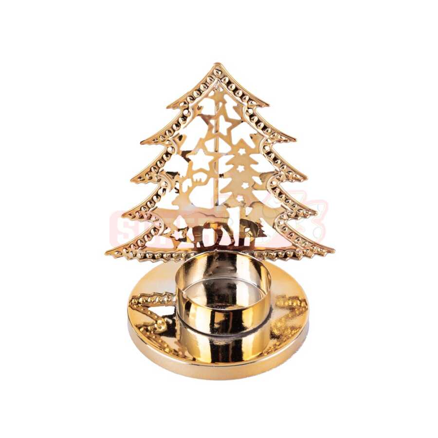 Bu qızılı şam ağacı formalı şam qabı (şamdan) zərif dizaynı ilə bayram süfrənizi işıqlandırmaq və evinizə isti ab-hava gətirmək üçün mükəmməl seçimdir. Metal materialdan hazırlanmış bu dekorativ şamdan parlaq səthi ilə işıqda parıldayır və interyerə lüks görünüş bəxş edir. Üzərindəki şam ağacı və maral fiqurları Yeni İl ruhunu əks etdirərək bayram dekorasiyasını tamamlamaq üçün idealdır. Bu məhsulu Supertoys mağazalarından və onlayn satışdan əldə edə bilərsiniz.