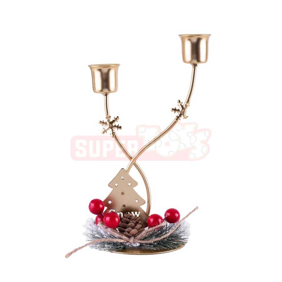 Bu qızılı iki şamlı Yeni İl şamdanı zərif və minimal dizaynı ilə bayram süfrələrinə xüsusi parlaqlıq gətirir. Metal materialdan hazırlanmış bu şam qabı dekorativ şam ağacı, qırmızı giləmeyvələr və şam qozası ilə bəzədilib. İncə qollarında qar dənəciyi detallarına yer verilmişdir ki, bu da məhsula estetik dəyər və bayram ruhu qatır. Ev, ofis və restoran dekorasiyasında isti, parlaq və qışa uyğun atmosfer yaratmaq üçün ideal seçimdir. Bu məhsulu Supertoys mağazalarından və onlayn satışdan əldə edə bilərsiniz.