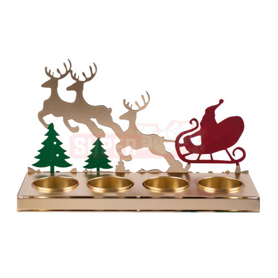 Bu Yeni İl temalı metal şamdan evinizə bayram sehrini gətirəcək ideal dekorasiyadır. Qızılı rəngdə marallar, yaşıl şam ağacları və qırmızı Santa arabası ilə bəzədilmiş dizaynı sayəsində həm masa üzərində, həm də rəf dekoru kimi istifadə oluna bilər. 4 şam yerləşdirmə bölməsi olan bu məhsul isti və rahat işıq effekti yaradaraq bayram gecələrinə xüsusi ab-hava qatır. Keyfiyyətli materialdan hazırlanıb və uzunmüddətli istifadə üçün uyğundur. Bu məhsulu Supertoys mağazalarından və onlayn satışdan əldə edə bilərsiniz.