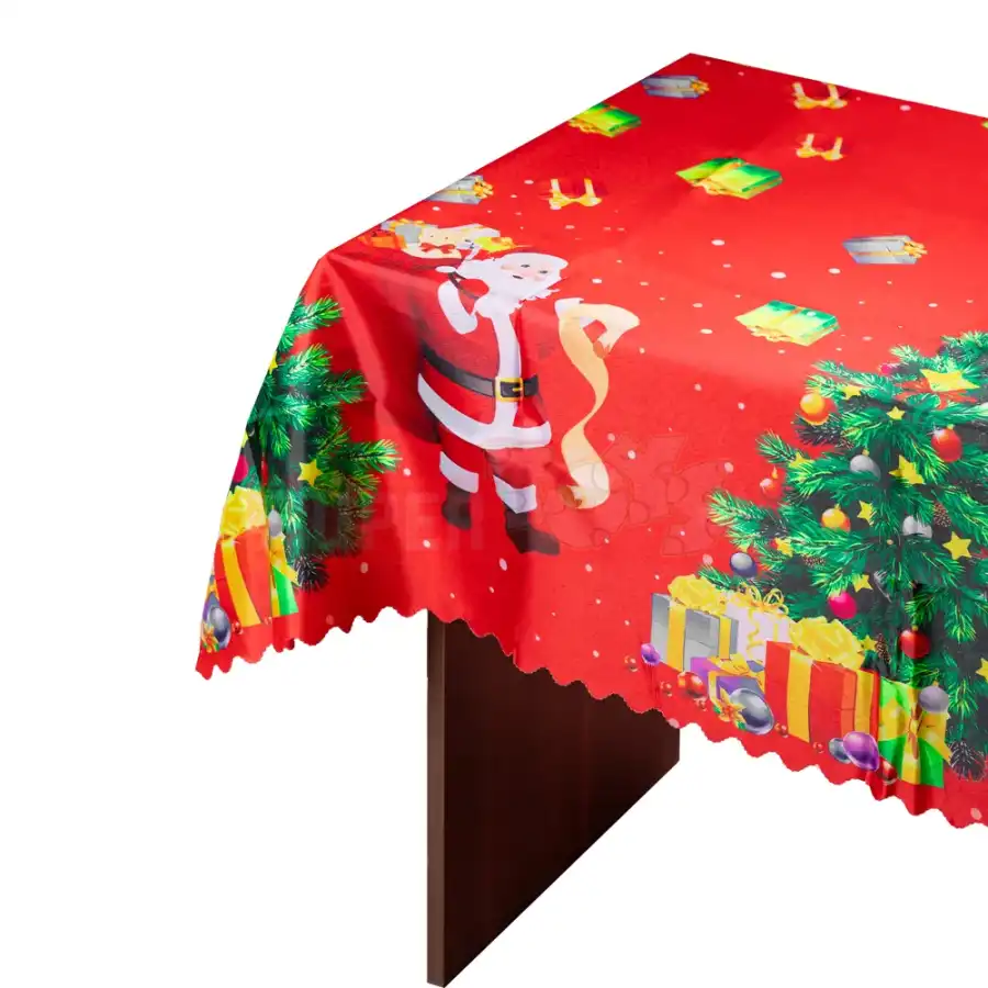 140×220 sm Yeni il süfrəsi parlaq qırmızı fonu, Şaxta baba və hədiyyə qutuları ilə bəzədilmiş dizaynı ilə bayram ab-havasını masanıza gətirir. Bayram süfrəsini daha rəngli, şən və dekorativ göstərmək üçün ideal seçimdir. Uzun masalar üçün uyğundur və həm gündəlik, həm də bayram xüsusi günlərində istifadə edilə bilər. Rəngi solmayan, təmizlənməsi asan materialdan hazırlanmışdır.