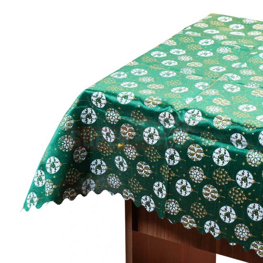 Bayram süfrənizi zərif və harmonik bir atmosferlə tamamlamaq üçün nəzərdə tutulan yaşıl Yeni il süfrəsi ilə tanış olun. Qızılı və ağ naxışlarla bəzədilmiş bu masa örtüyü həm ənənəvi, həm də müasir dekorasiyalara mükəmməl uyğunlaşır. Parça materialı sayəsində asanlıqla təmizlənir və təkrar istifadəyə yararlıdır. Həm ailəvi yeməklərdə, həm də Yeni il ziyafətlərində masanıza bayramın istiliyini gətirəcək.