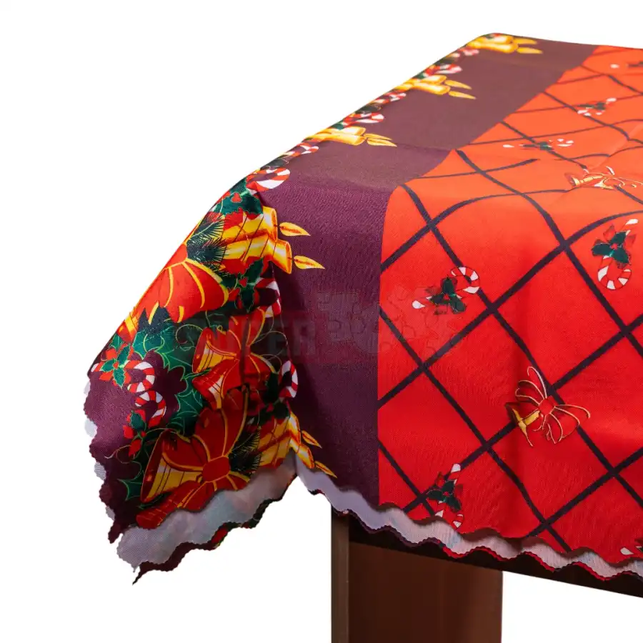 Yeni ilin ən gözəl anlarını bəzəyəcək bu bayram süfrəsi, parlaq qırmızı və qızılı tonları ilə masa dekorasiyanıza xüsusi zəriflik qatır. Şam, hədiyyə və konfet çubuğu naxışları ilə bəzədilmiş bu süfrə, ailəvi yeməklər, şənliklər və bayram süfrələri üçün ideal seçimdir. Materialı asan təmizlənir və uzunömürlüdür, həm gündəlik, həm də xüsusi günlərdə rahatlıqla istifadə oluna bilər.