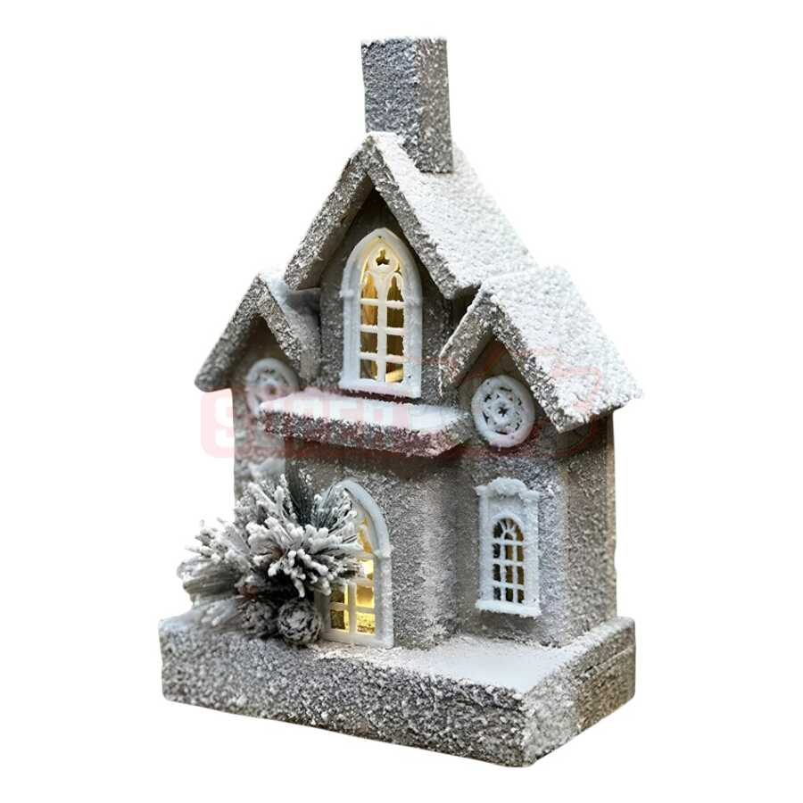 30 sm ölçülü işıqlı Yeni İl suvenir evi evinizə bayramın sehrini gətirəcək. Qarla örtülmüş damı, pəncərələrindən süzülən işığı və dekorativ şam ağacı ilə qış nağılını xatırladan gözəl bir görünüş yaradır. İstər yolkanın yanında, istər masaüstündə və ya ev dekorasiyasında istifadə edərək ətrafınıza isti və möhtəşəm bayram ab-havası qatacaq. İşıqlı effekti sayəsində qaranlıqda evinizə xüsusi işıltı bəxş edir. Həm dekorasiya, həm də hədiyyəlik üçün ideal seçimdir.