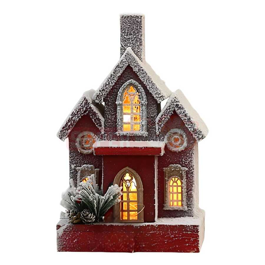30 sm ölçülü qırmızı işıqlı Yeni İl suvenir evi evinizə sehrli bayram ab-havası bəxş edir. Qar örtüklü damı, işıqlı pəncərələri və dekorativ şam budağı ilə nağılvari bir görünüş yaradır. Bu dekorativ ev istər yolkanın yanında, istər masaüstündə, istərsə də evin müxtəlif guşələrində Yeni İl atmosferini daha da gözəlləşdirəcək. Uşaqlar və böyüklər üçün əyləncəli dekor olmaqla yanaşı, hədiyyəlik üçün də ideal seçimdir.