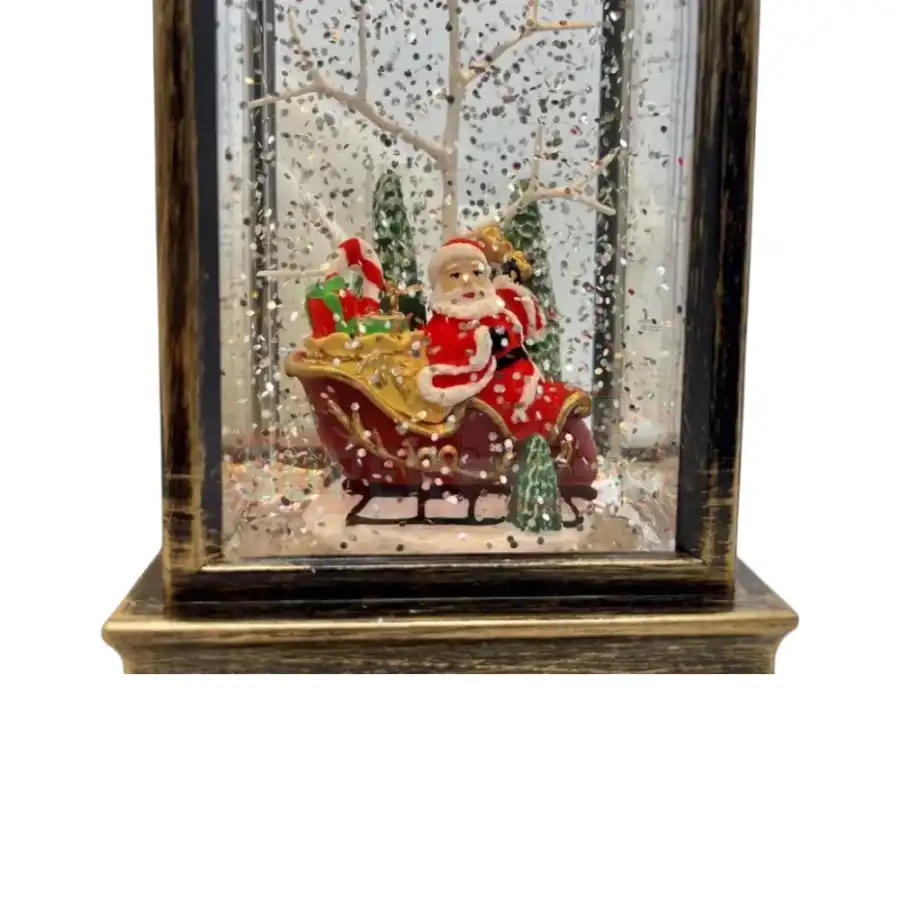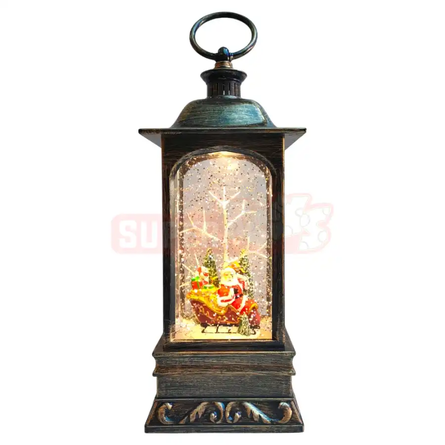 Yeni il suveniri fənər – Santa xizəkdə dekoru – bayram ab-havasını yaşadan zərif və klassik fənər modelidir. İçərisində Santa Claus xizəkdə hədiyyələr daşıyır, ətrafında parlayan işıqlar və qar dənəcikləri ilə bəzədilmişdir. Qızılı-qəhvəyi tonlarda olan bu fənər həm nostaljik, həm də müasir görünüşü ilə ev və ofis dekorasiyasına xüsusi parlaqlıq qatır. Hədiyyəlik və bəzək məqsədi ilə ideal seçimdir.