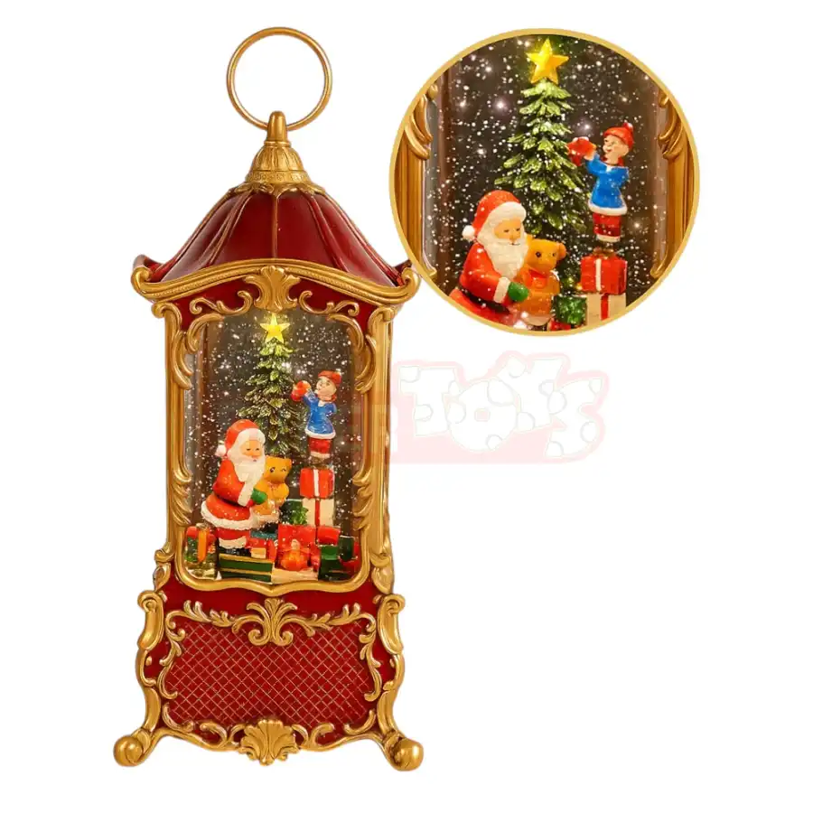 Yeni il suveniri fənər – zərif qızılı və qırmızı tonlarda hazırlanmış, daxilində Santa Claus və Yeni il ağacı səhnəsi olan dekorativ işıqlı fənər modelidir. Hərəkətli qarlı effekt və parlaq işıqlar bu suveniri həm nostaljik, həm də çox estetik bir bəzək elementinə çevirir. Ev, ofis və vitrinlər üçün ideal bəzək olmaqla yanaşı, hədiyyəlik olaraq da mükəmməl seçimdir.