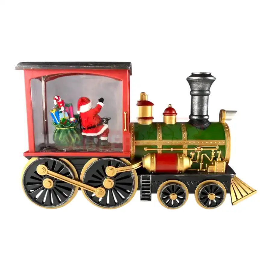 Yeni il suveniri qatar – Santa və maral dekoru klassik retro dizaynlı, yaşıl-qırmızı tonlarda hazırlanmış, işıqlı və qar effektli dekor modelidir. Qatarın kabinəsində Santa Claus və geyik fiqurları yerləşdirilib, ətrafında isə parıltılı qar dənəcikləri bayram sehrini tamamlayır. Həm uşaqlar, həm də böyüklər üçün sevimli olan bu suvenir ev və ofis dekorasiyasında xüsusi ab-hava yaradır. Bayram günlərində hədiyyə üçün ideal seçimdir.