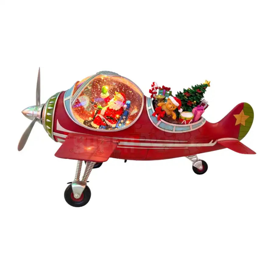 Yeni il suveniri təyyarə – Santa Claus və şam ağacı səhnəsi ilə bəzədilmiş, işıqlı və hərəkətli premium dekor modelidir. Qırmızı metal görkəmi, detallı dizaynı və içərisindəki dinamik bayram səhnəsi ilə bu suvenir ev və ofis mühitinə nostaljik və eyni zamanda müasir bir Yeni il havası qatır. Bütün diqqəti üzərinə cəmləyən bu dekor, uşaqlar və böyüklər üçün unudulmaz hədiyyə seçimidir.