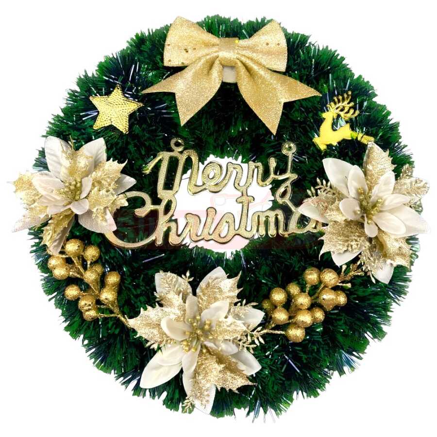 Yeni ilinizi daha da möhtəşəm etmək üçün qızılı detallarla bəzədilmiş dekorativ venok evinizə bayram ab-havası qatacaq! Qapı, divar və ya dekorativ masaların üzərində istifadə oluna bilən bu xüsusi venok şam ağacının yaşıllığı, qızılı çiçəkləri, ulduz və geyik bəzəkləri ilə göz oxşayır. “Merry Christmas” yazısı ilə zövqlü və şıq görünüşə sahibdir.