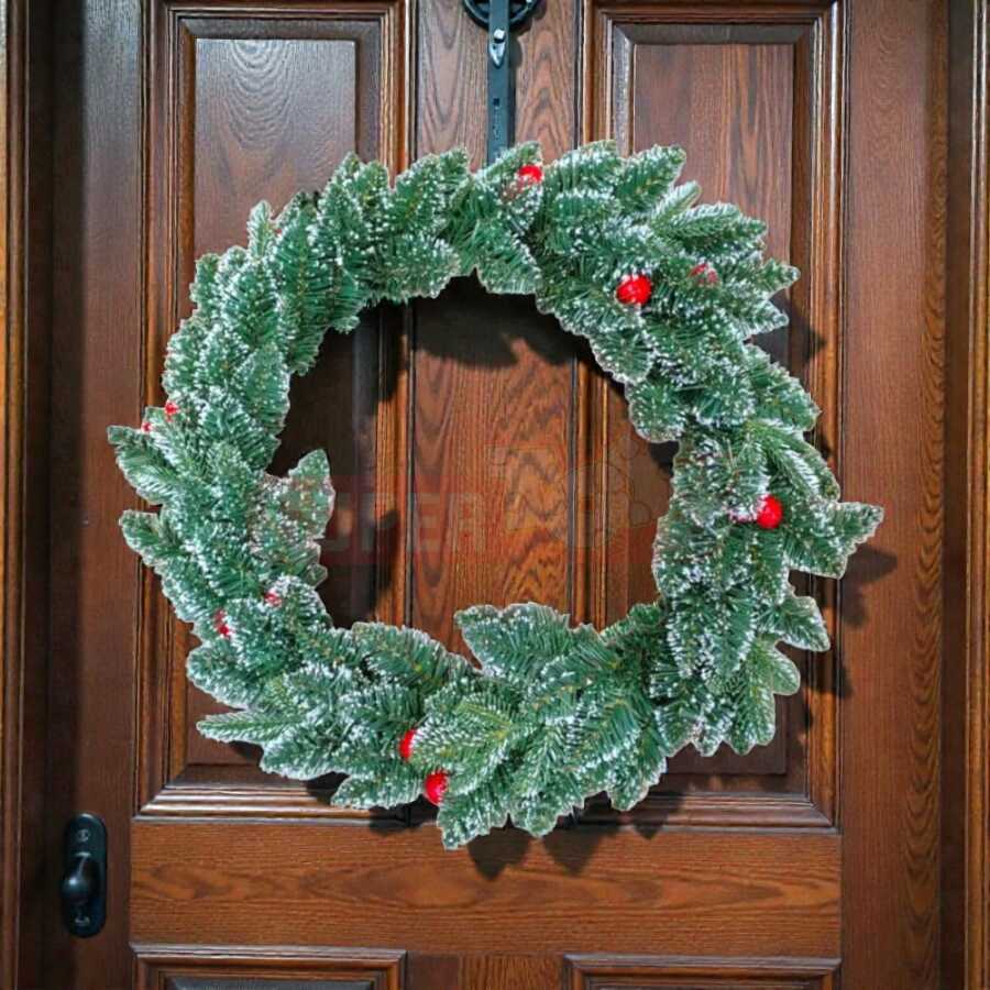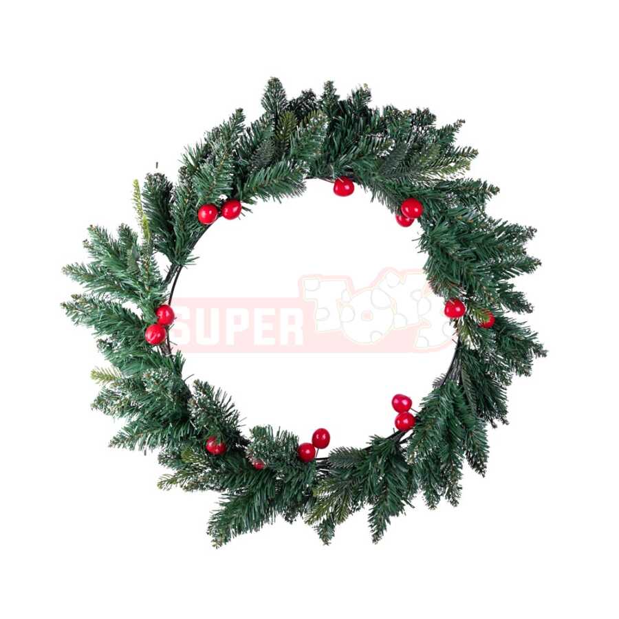 Rəng: Yaşıl, qarlı effekt və qırmızı giləmeyvə bəzəkləri ilə