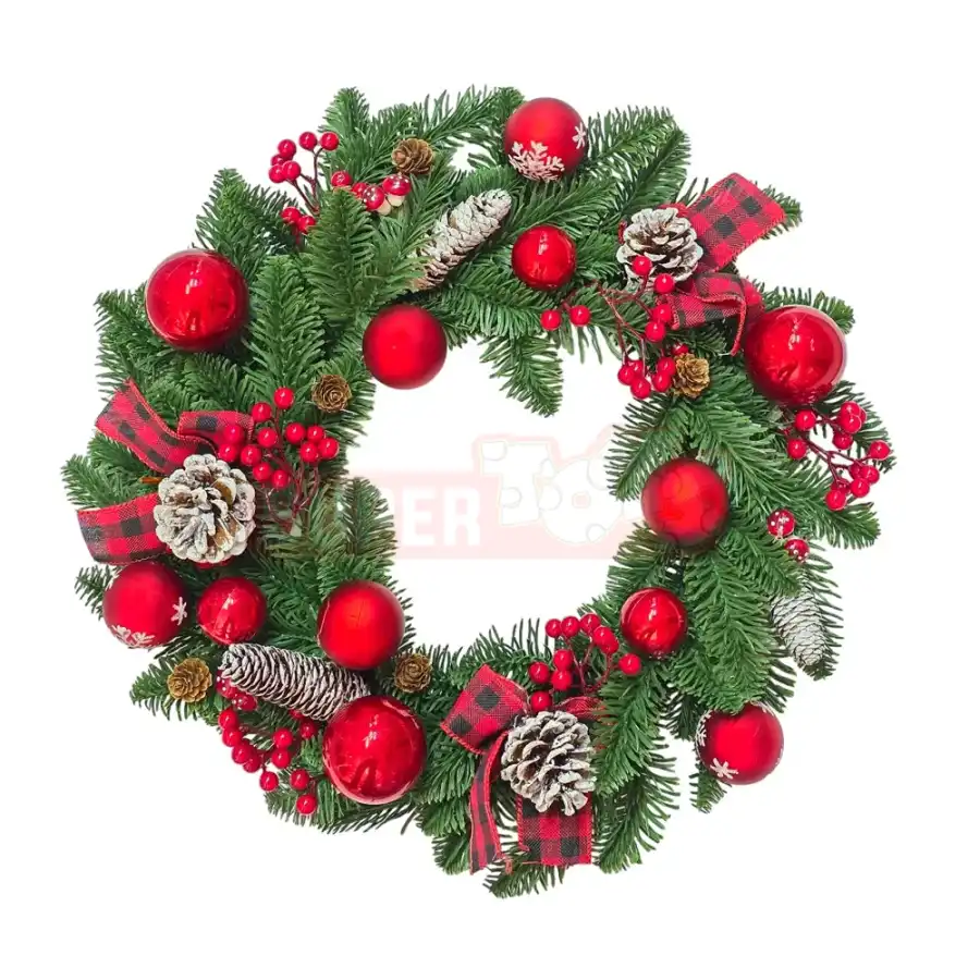 Yeni il venoku qapı, divar və ya vitrin dekorasiyası üçün əvəzolunmaz bayram aksessuarıdır. Tünd yaşıl şam budaqları, qırmızı oyuncaqlar, şam qozaları və lent detalları ilə hazırlanmış bu dekor evinizə isti və şən yeni il ab-havası qatır. Möhkəm konstruksiyası ilə uzun müddət formasını itirmir və həm daxili, həm də xarici məkanda istifadəyə uyğundur.