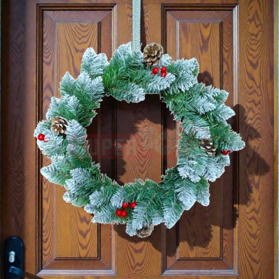 Evinizə bayram abu-havası gətirən 45 sm-lik Yeni İl Venoku, qarlı budaqları və şam qozaları ilə təbii və zərif bir görünüş yaradır. Qırmızı giləmeyvə bəzəkləri və yumşaq qar effekti sayəsində interyerinizə isti və klassik bayram toxunuşu əlavə edir. Yüksək keyfiyyətli süni materialdan hazırlanmış bu venok həm qapı, həm də masa və divar bəzəyi kimi istifadə oluna bilər.