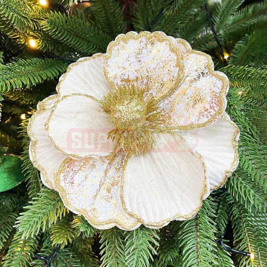 Ağ və qızılı parıltılı yolka çiçəyi Yeni il yolkanız üçün ən zərif bəzəklərdən biridir. Böyük ləçəkləri və qızılı detalları ilə yolkanın üzərində parlaq və gözoxşayan görüntü yaradır. Klassik və şıq dekorasiyanı sevənlər üçün ideal seçimdir. İstər yolkanın əsas hissəsində, istərsə də kənar budaqlarda istifadə olunsun, bu çiçək bayram ab-havasını tamamlamaq üçün əvəzolunmazdır. Bu məhsulu Supertoys mağazalarından və onlayn satışdan əldə edə bilərsiniz.