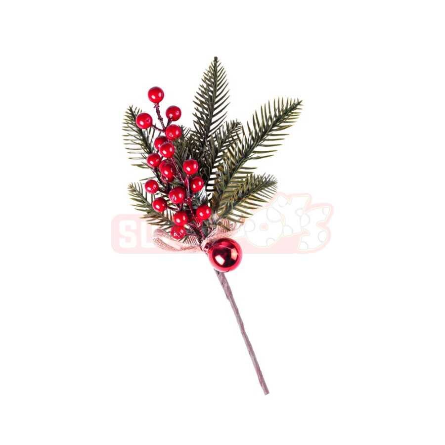 Qırmızı gilələr və yaşıl şam budaqları ilə bəzədilmiş bu yolka çiçəyi, təbii və zərif görünüşü ilə Yeni il dekorasiyasının tamamlayıcısıdır. Realistik teksturası sayəsində həm yolka üzərində, həm də interyer dekorlarında bayram havası yaradır. Parıltılı detallar və qırmızı top ilə tamamlanmış dizayn evinizə istilik və rəng qatır.