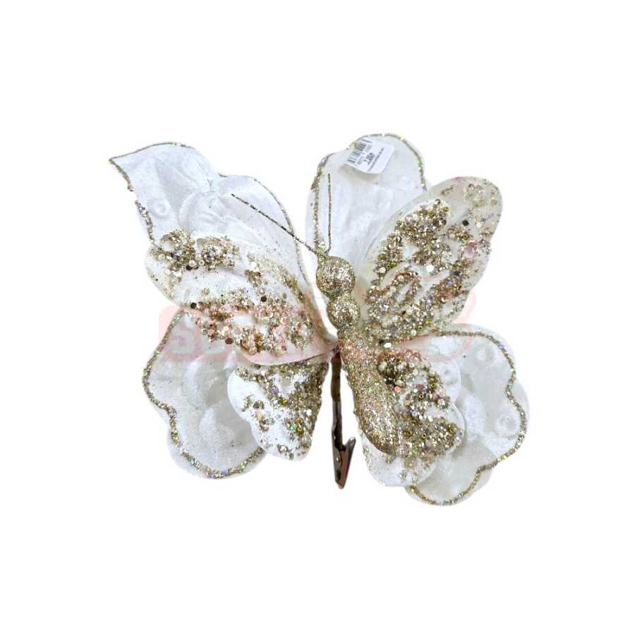 Yolka Çiçəyi Yeni İl Dekoru zərif kəpənək forması və ağ-qızılı parlaq dizaynı ilə yolkanın görünüşünü daha eleqant və bayram ab-havalı edir. Parça üzərində işlənmiş parıltılı detalları işıq altında xüsusi effekt yaradır və yolka bəzəkləri arasında seçilir. Klipsli quruluşu sayəsində yolkaya, çələnglərə və dekorativ budaqlara asanlıqla bərkidilir. Ev, ofis, vitrin və tədbir dekorasiyaları üçün ideal seçimdir. Bu məhsulu Supertoys mağazalarından və onlayn satışdan əldə edə bilərsiniz.