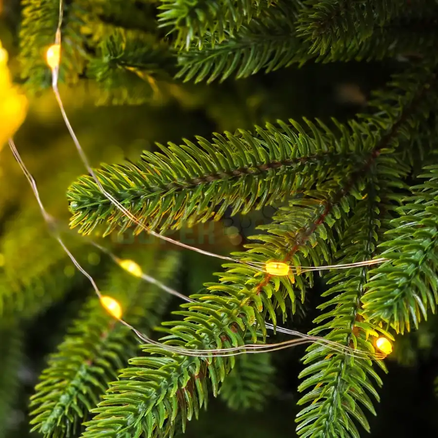 Nazik tel üzərində olan isti sarı LED işıqlar yolkanı, ev interyerini və hər cür Yeni İl dekorunu daha valehedici göstərmək üçün ideal seçimdir. İşıqlar çox yumşaq parıltı yaradır və iynəyarpaq detalları üzərində xüsusi bayram abu-havası formalaşdırır. Yüngül konstruksiya sayəsində yolkanın budaqları arasında rahat yerləşir, qızmır və təhlükəsiz istifadə olunur.