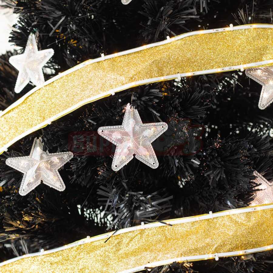 Bu 1.8 metr hündürlüyündə bəzəkli yolka zərif və fərqli tərzi ilə bayram ab-havasını evinizə gətirir. Qara rəngli budaqlar qızılı lent və ağ ulduz bəzəklərlə tamamlanaraq müasir, eyni zamanda şıq görünüş yaradır. Yolkaya öncədən quraşdırılmış bəzəklər sayəsində əlavə dekorasiya tələb etmir – sadəcə quraşdırın və Yeni il sehrindən zövq alın. Möhkəm metal dayaqlığı sayəsində sabit və uzunömürlüdür.