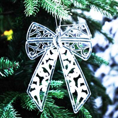 Yeni il yolkanızı daha zərif və işıltılı göstərmək üçün ağ şəffaf bantik formalı yolka oyuncağı ideal seçimdir. Xüsusi dizaynı sayəsində işığı əks etdirərək parıltılı bir görüntü yaradır. Evinizə, ofisinizə və ya istənilən məkanın yolkasına xüsusi bayram ab-havası qatacaq.